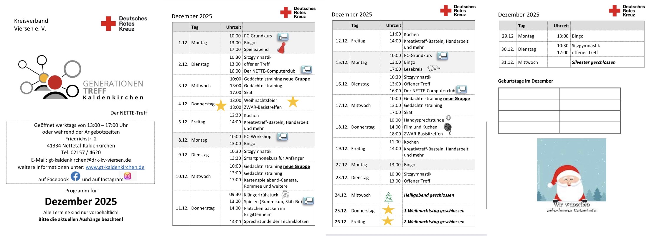 Der DRK Kreisverband Viersen e.V. bietet auch in disesem Jahr wieder tolle Tagestouren an. Neben einer Schifffahrt von Düsseldorf nach Zons, zur Glashütte Monschau als auch ins Gasometer Oberhausen und zum Jahresabschluss fahren wir auf ...